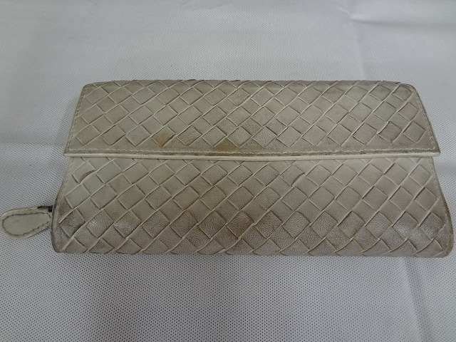 今回は、ボッテガ・ヴェネタの長財布ダメージ補修のご紹介になります。
