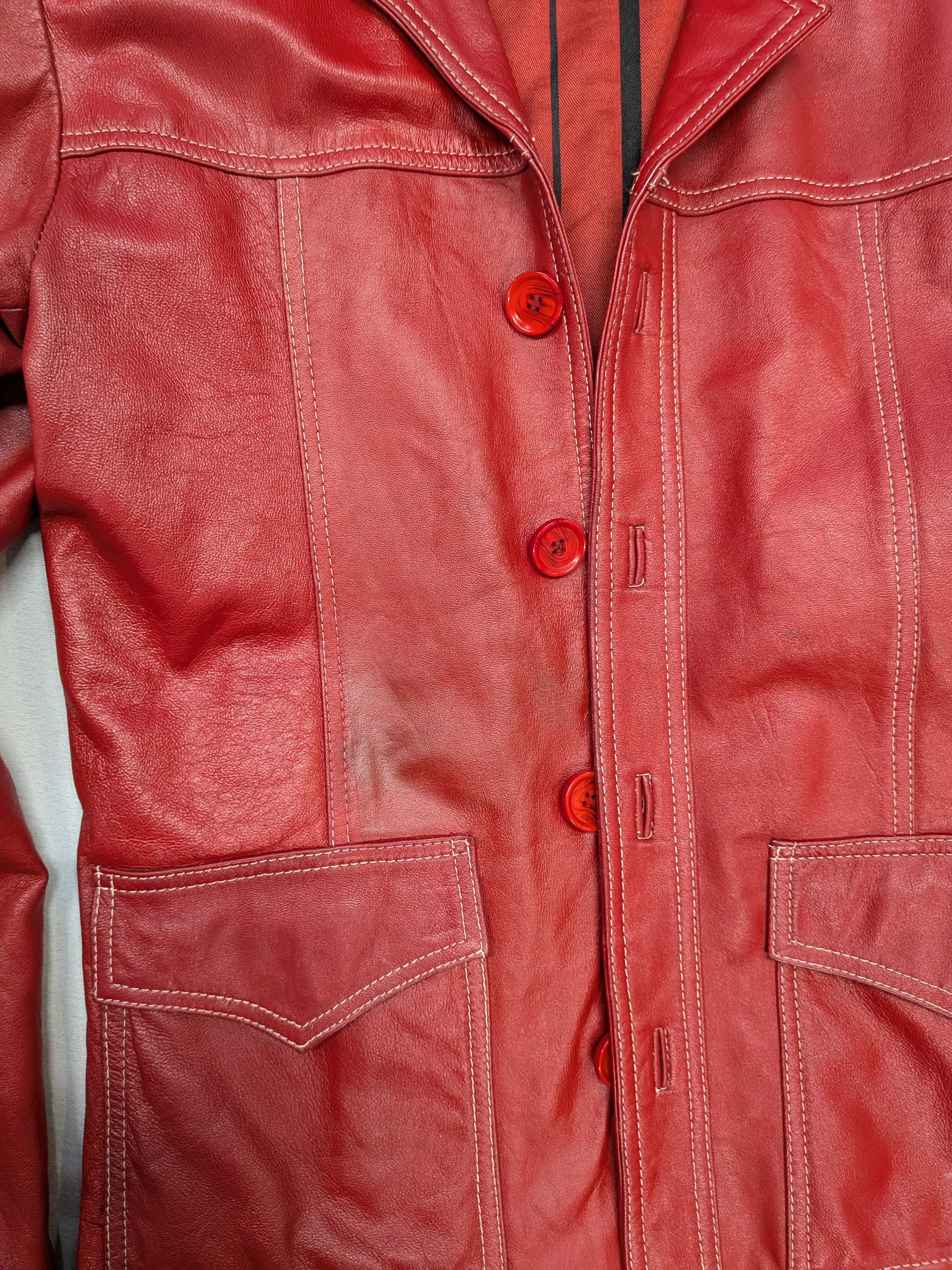 鮮やかなレッドのジャケットです。