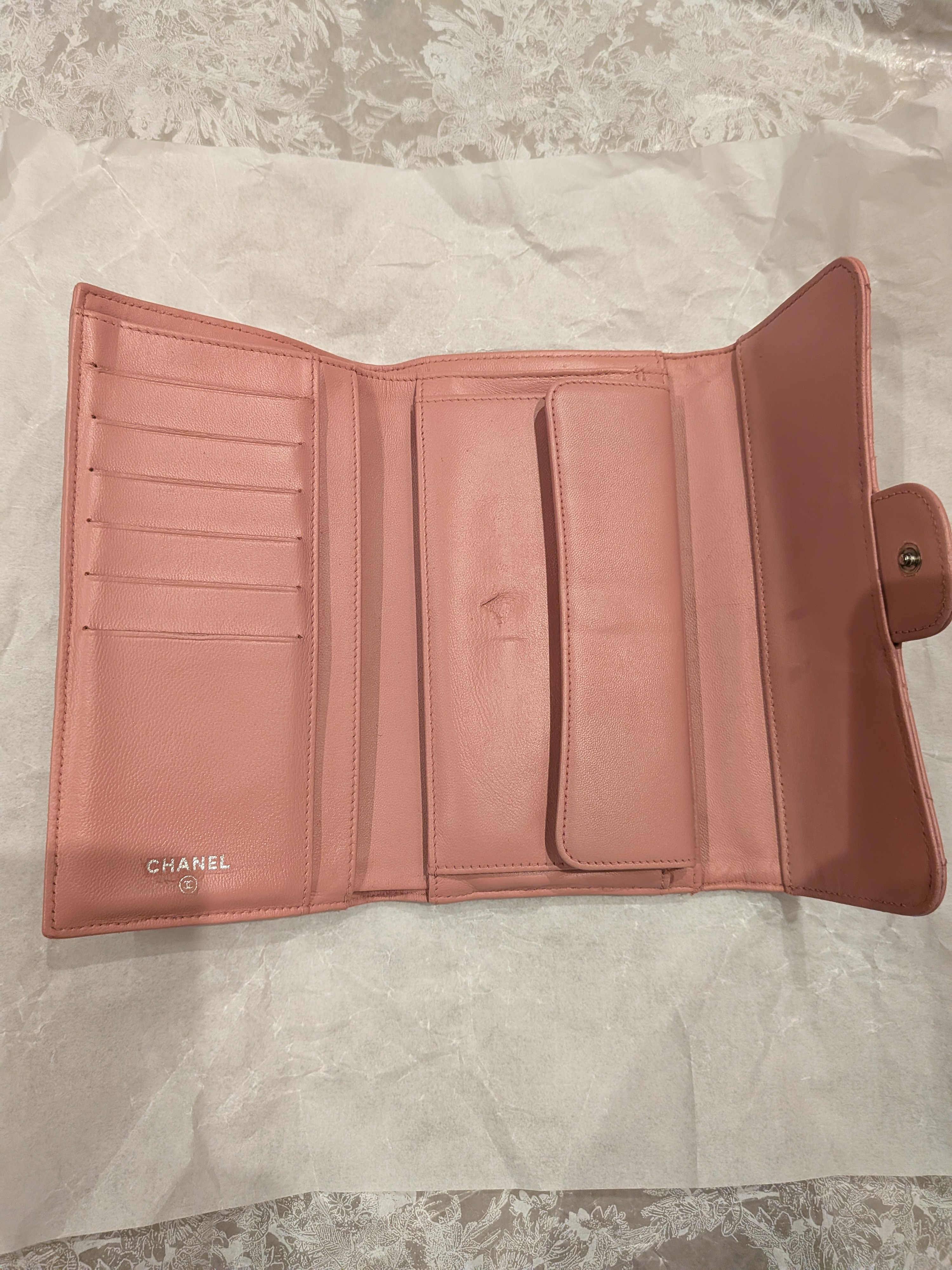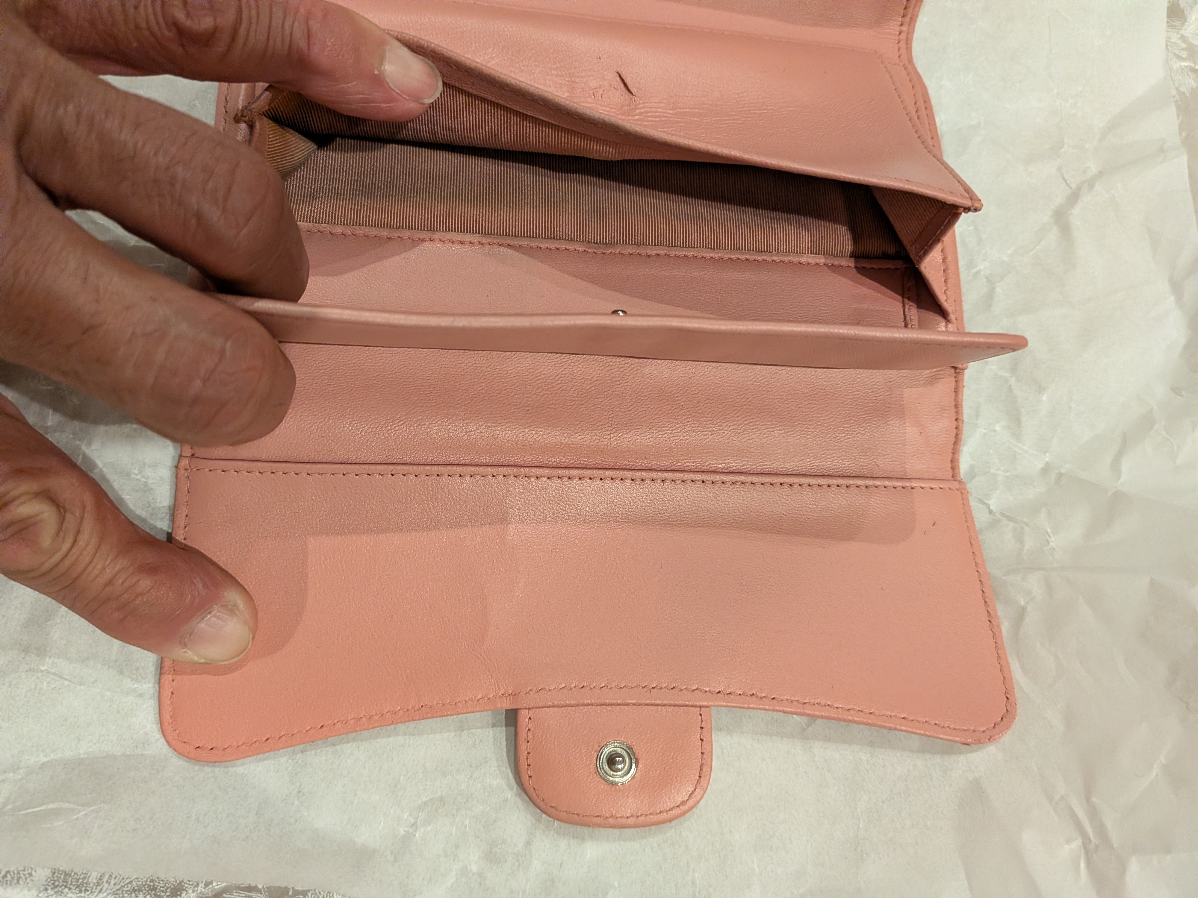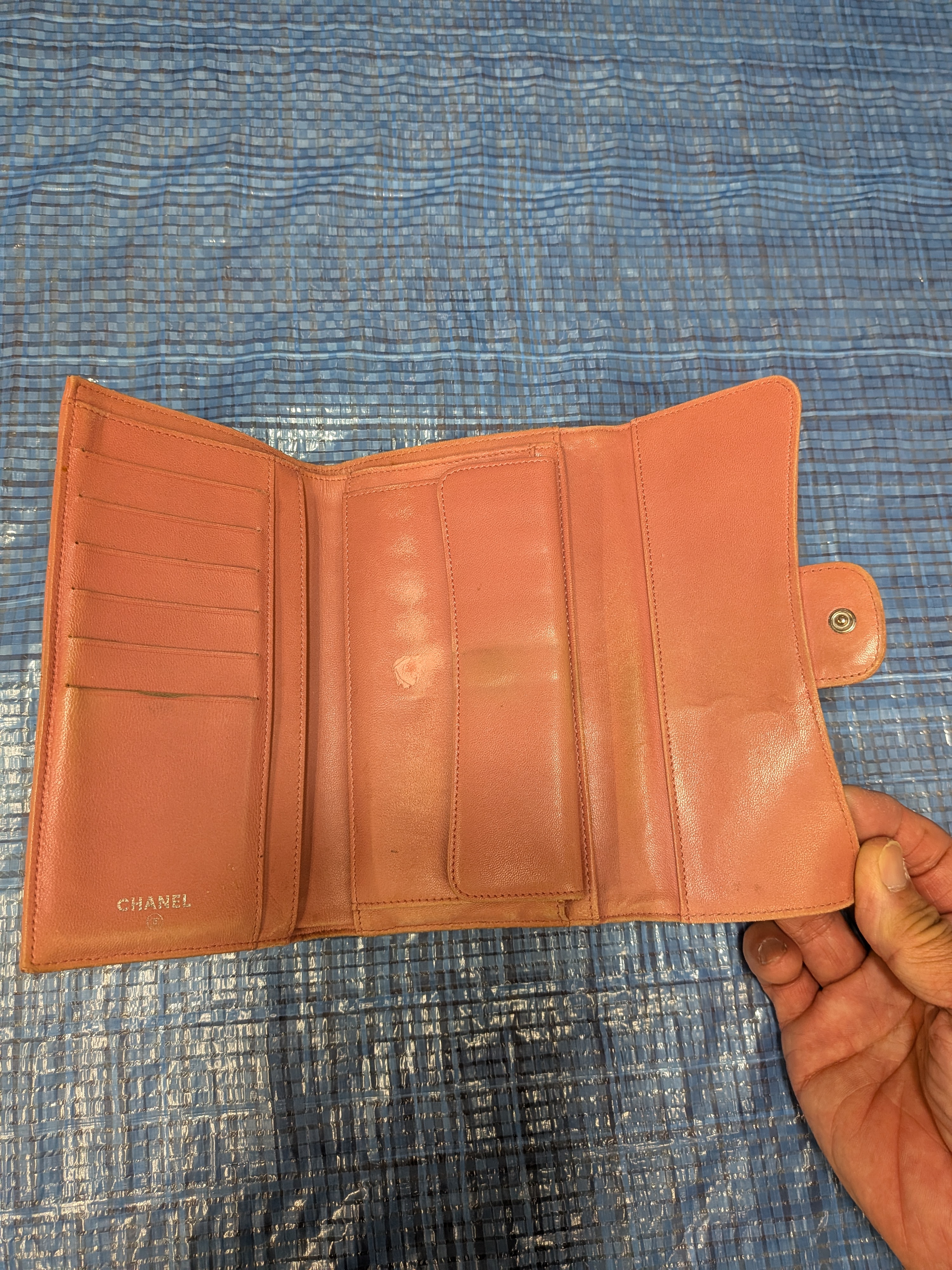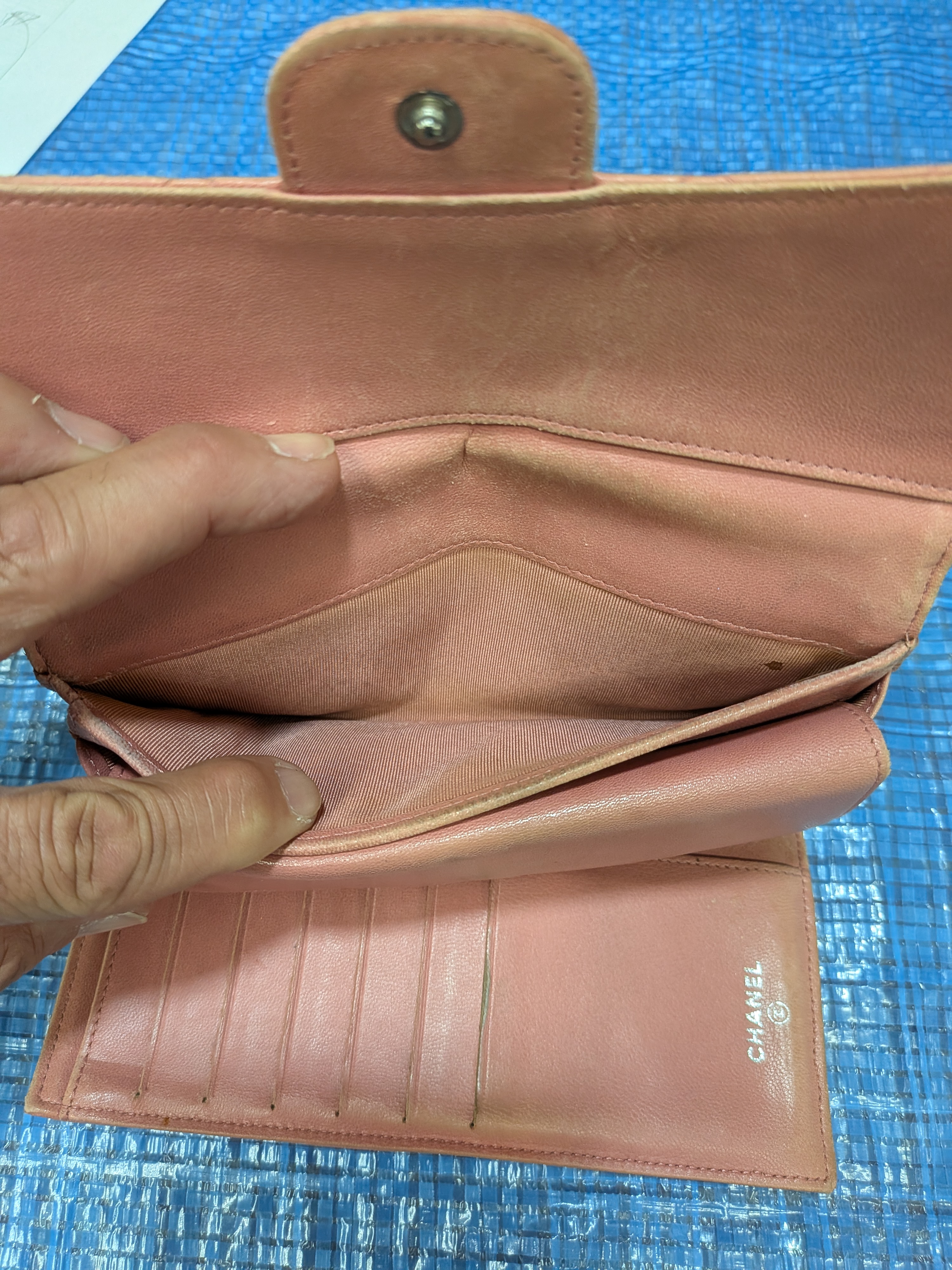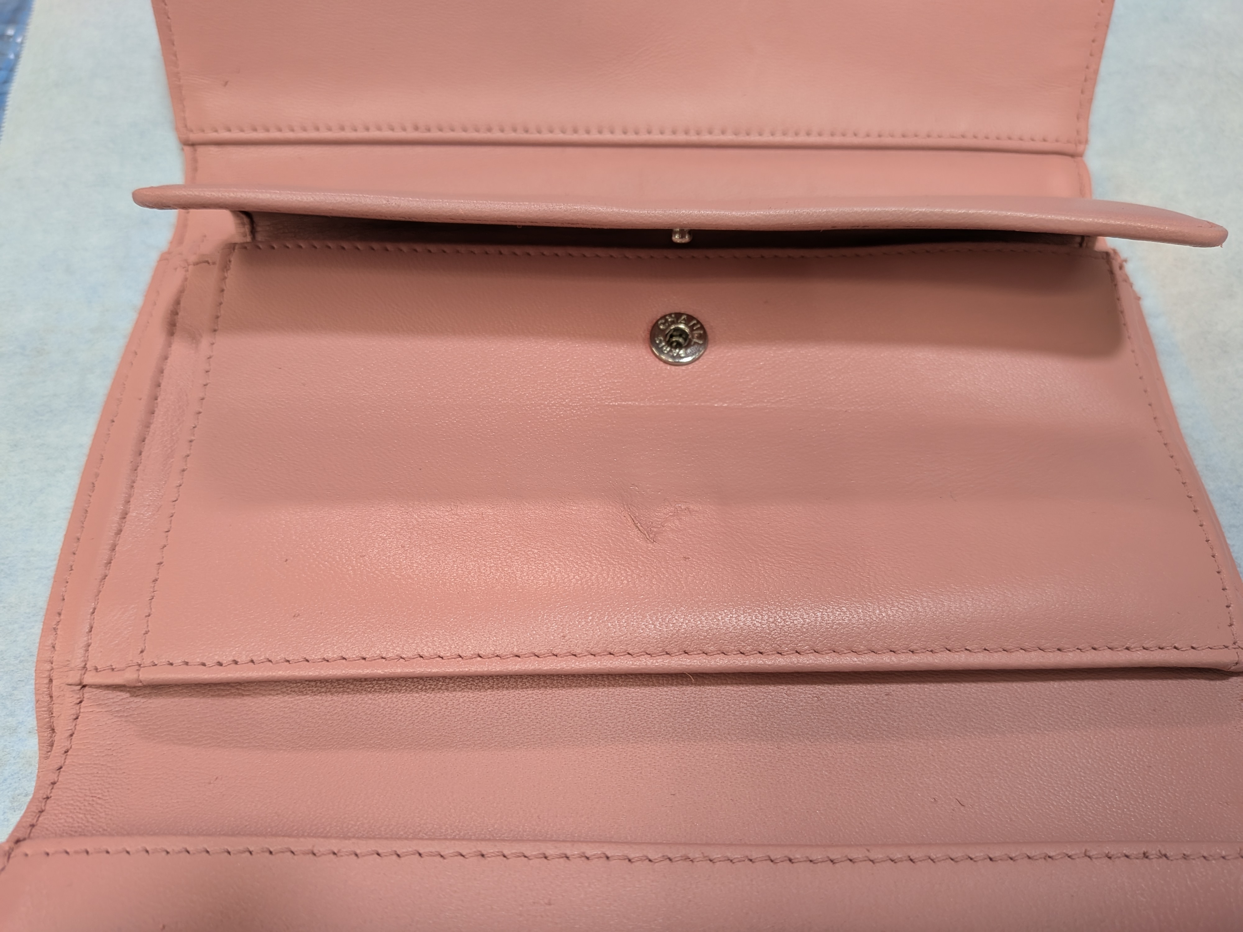 シャネル 三つ折り財布のリペア施工のご紹介です。