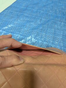 破れる寸前の箇所は無理をせず、キズを埋めてカラーを入れる施工に留めました。